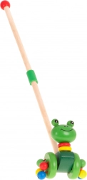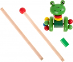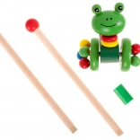 Urocza drewniana żabka na kółkach, którą można prowadzić za pomocą odczepianego kijka, jest idealną zabawką dla dzieci, które dopiero uczą się chodzić. Ta zabawka nie tylko motywuje do spacerów, ale także rozwija ich koordynację i równowagę.