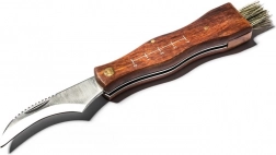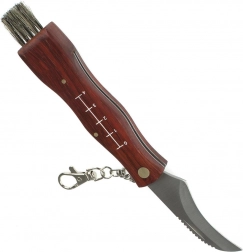 Ten uniwersalny nóż grzybiarski łączy ostre zakrzywione ostrze do precyzyjnego odcinania grzybów z delikatną szczoteczką do usuwania zanieczyszczeń. Drewniana rękojeść świetnie leży w dłoni, a zintegrowana miarka z jednej strony pomaga szybko ocenić wielkość zbioru.