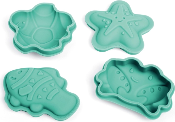 Zestaw zawiera cztery różne silikonowe formy w kształcie kraba, ryby, rozgwiazdy i żółwia, aby maksymalnie pobudzić kreatywność Twoich dzieci.