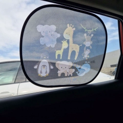 Ciesz się spokojem w podróży ze statyczną osłoną przeciwsłoneczną, która przyczepia się bezpośrednio do szyby dzięki folii statycznej na tylnej stronie. Półtransparentna czarna siatka we wzór zwierzątek przepuszcza przyjemne światło dzienne, a jednocześnie eliminuje ostre promienie słoneczne i zwiększa prywatność pasażerów.