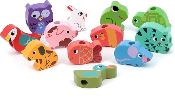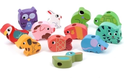 Przewlekanka wspiera kreatywność i drobną motorykę, kiedy dzieci nawlekają zwierzęce koraliki na sznureczkę.