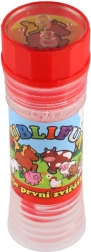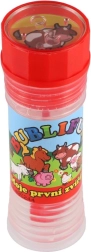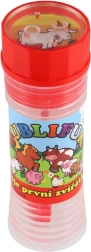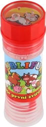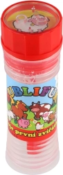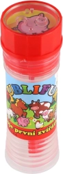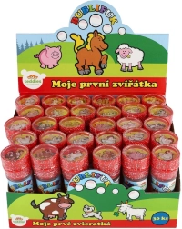 Zabawny płyn do baniek z motywem Moje pierwsze zwierzątka ucieszy każde dziecko. Zawiera 50 ml płynu do baniek, w nakrętce jest zintegrowana gra, a dmuchawka stanowi część nakrętki. Idealny na przyjęcia, zabawę na świeżym powietrzu oraz drobne nagrody. Odpowiedni od 6 lat.