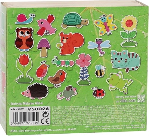 Odkryj kreatywne możliwości z drewnianymi magnesami Vilac z motywem ogrodu. Te solidne i ekologicznie produkowane elementy oferują nieograniczone możliwości zabawy i dekoracji. Ciesz się pięknymi, kolorowymi ilustracjami, które mogą ozdobić lodówkę lub dziecięcy pokój.