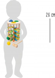 Wieża do wbijania z kulkami od Small Foot to idealna zabawka do rozwijania zdolności motorycznych dzieci. Składa się z wieży, gdzie dzieci wbijają 3 kolorowe kule przez plastikowe pierścienie i obserwują, jak kule spadają na dół rampą, wydając klikający dźwięk.