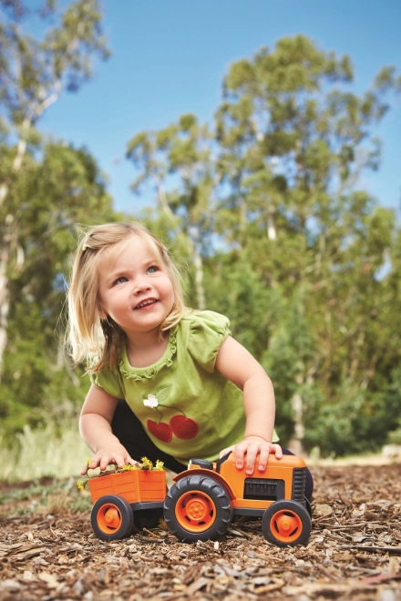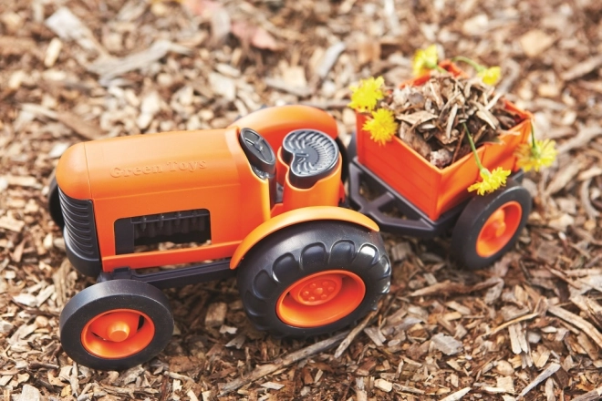 Odkryj świat rolniczej zabawy z pomarańczowym traktorem z przyczepą od marki Green Toys. Ta zabawka jest wykonana z recyklingowanego plastiku pochodzącego z butelek po mleku, co zapewnia zarówno trwałość, jak i przyjazność dla naszej planety. Odpowiedni do użytku wewnątrz i na zewnątrz, traktor zapewnia nieskończone godziny zabawy dla dzieci od 12 miesięcy.