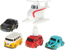 - Bogate wyposażenie: radiowóz, wóz strażacki, szkolny autobus, samochód osobowy i helikopter