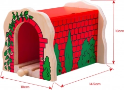 Dodaj nowy wymiar swojej kolejce z drewnianym tunelem ceglanym. Jest wykonany z wysokiej jakości drewna, ma solidną konstrukcję i przyciągający wzrok design przypominający ceglaną budowlę pokrytą zielenią.