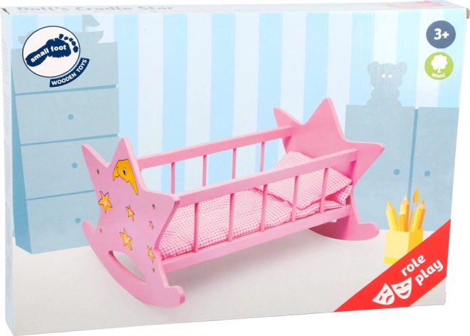 Ta urokliwa kołyska dla lalek jest wykonana z wysokiej jakości drewna i oferuje radosne motywy gwiazd i księżyców. Stabilna konstrukcja zapewnia bezpieczną zabawę, a jej delikatne kołysanie wspiera umiejętności społeczne i zabawy wyobrażeniowe.