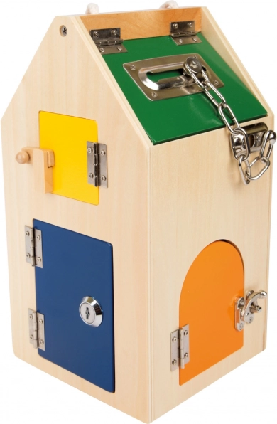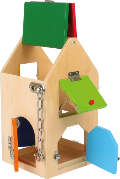 Kłódka, zamek cylindryczny, łańcuszek, zawiasy i inne mechanizmy uczą dzieci cierpliwości, logiki oraz precyzyjnych ruchów palców.