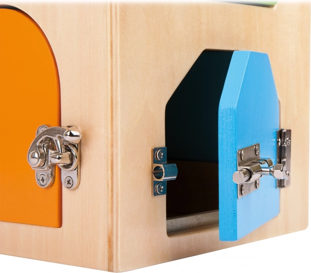 Domek motoryczny z zamkami small foot to sprytna zabawka dydaktyczna, która dzieciom od 3 lat pozwala bezpiecznie poznawać świat zamknięć i elementów mechanicznych. Każde drzwiczki skrywają inne wyzwanie – od kłódki i zamka cylindrycznego, przez różne śruby i dźwignie, po zawiasy i łańcuch zabezpieczający. Dzięki temu naturalnie rozwija się koordynacja ręka–oko, cierpliwość i koncentracja.