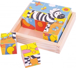 Klocki obrazkowe Safari zapewniają niezwykłą zabawę i wspierają rozwój zręczności, umiejętności oraz koncentracji u dzieci. Dzięki tej kreatywnej zabawce dzieci mogą ułożyć sześć różnorodnych scen. Solidne, drewniane wykonanie gwarantuje długą trwałość i bezpieczeństwo podczas zabawy. Dodatkowo praktyczna drewniana podstawka umożliwia stabilniejsze układanie, co jest szczególnie przydatne w podróży.