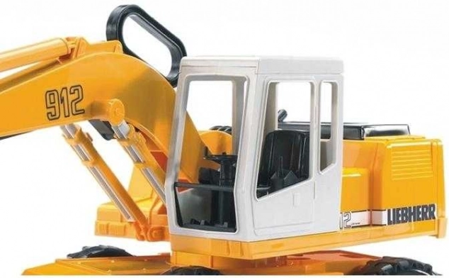 Bruder koparka Liebherr jest wiernym modelem maszyny budowlanej z funkcjonalnym ramieniem, stabilizatorem i obrotową podstawą, co czyni go doskonałym dodatkiem dla każdego małego budowniczego.