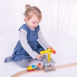 Żuraw można łatwo łączyć z innymi drewnianymi torami kolejowymi na rynku, co czyni go uniwersalną zabawką.