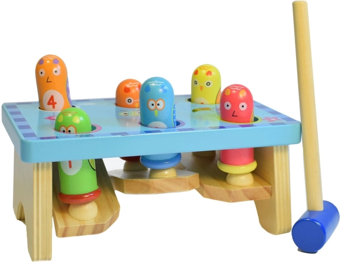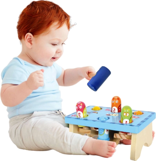 Dzięki solidnemu wykonaniu i ergonomicznemu młoteczkowi dzieci ćwiczą małą motorykę, koordynację ruchów oraz cierpliwość. Kolorowe i ponumerowane kołeczki pomagają w rozpoznawaniu barw i liczeniu, więc zabawa naturalnie łączy się z nauką.