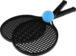 Jeśli szukasz lekkiego i poręcznego zestawu do soft tenisa, ten komplet jest właśnie dla Ciebie! Zawiera dwie wytrzymałe czarne plastikowe rakietki oraz niebieską piłkę z pianki dla większego bezpieczeństwa i łatwej obsługi. Przeznaczony do rekreacyjnej gry, idealny do zabawy na plaży, w ogrodzie lub w parku.