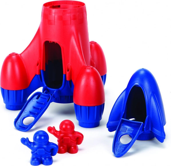 Wyrusz w kosmiczną przygodę z zabawką GREEN TOYS – niebieską rakietą z przetworzonego plastiku z butelek po mleku. Bezpieczna dla dzieci, bez PVC, BPA i ftalanów, z odłączanym kokpitem, otwieranymi drzwiami oraz dwiema figurkami astronautów do kreatywnej zabawy w domu, w piasku i nad wodą.
