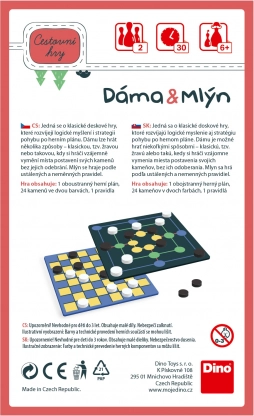Ciesz się klasycznymi grami strategicznymi gdziekolwiek w podróży. Kompaktowy zestaw marki Dino oferuje dwustronną planszę do warcabów i młyna, wspólne czarne i białe pionki oraz praktyczne opakowanie do plecaka. Świetnie bawi dzieci i dorosłych, rozwijając logiczne myślenie, taktykę i cierpliwość. Wyprodukowane w Czechach, posiada certyfikat Bezpieczna i jakościowa zabawka.