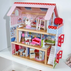 Domek dla lalek KidKraft Chelsea zachwyca bogatymi detalami i przemyślanym wyposażeniem. Trzy piętra z pięcioma pokojami i balkonem zachęcają do swobodnej zabawy, a kolorowe dodatki i realistyczne elementy wspierają rozwój wyobraźni oraz małej motoryki. W zestawie 16 sztuk mebli do natychmiastowej zabawy.