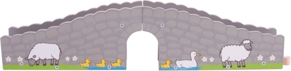 Zaprojektowany w szarym kolorze, przypominający kamienny most z ilustracjami zwierząt farmy dla autentycznych wrażeń.