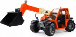Teleskopowe ramię podnoszone jest korbką w tylnej części maszyny i można je wysunąć do długości 40 cm. Przednia łyżka jest odchylana i łatwo wymienialna na akcesoria BRUDER (paleta, wciągarka, widły – BR2318). Kabina z niełamliwego poliwęglanu z otwieranymi drzwiami oraz zaczep holowniczy dopełniają autentyczne wrażenia z obsługi sprzętu budowlanego.