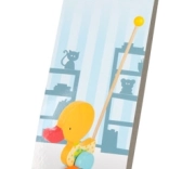 Urocza kaczuszka z kolorowo bejcowanego drewna, która podczas popychania kołysze się na nóżkach. Wspiera dzieci w nauce chodzenia i towarzyszy im przy ich pierwszych krokach.