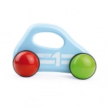 Zintegrowany uchwyt umożliwia dzieciom od 12 miesięcy łatwe trzymanie, pchanie i przenoszenie samochodzika. Wspiera pewny chwyt i rozwój małej motoryki.