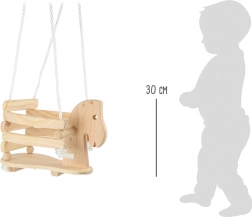 Hej, do przodu w rytmie huśtania! Ta dziecięca huśtawka w kształcie konika z litego drewna oferuje bezpieczne i wygodne siedzenie dzięki przestronnemu siedzisku, oparciu oraz podwyższanej barierce. Boczne uchwyty dla pewnego chwytu, wytrzymałe linki nylonowe z metalowymi kółkami oraz udźwig 30 kg gwarantują stabilną i radosną zabawę w domu i w ogrodzie.