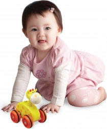 Wykonana z litego drewna o przyjemnie zaokrąglonych kształtach i starannym wykończeniu, bezpiecznym dla małych dłoni. Intensywne kolory i przyjazny wyraz żyrafy przyciągają uwagę i motywują do zabawy.