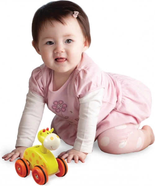 Ta wesoła żyrafa na kółkach to idealny pierwszy pojazd do dziecięcych rączek. Przechylając zabawkę, dziecko łatwo zmienia kierunek jazdy, co naturalnie rozwija koordynację oko–ręka i wspiera aktywną zabawę. Gumowe pierścienie na kółkach zapewniają płynny i cichy ruch na różnych nawierzchniach.