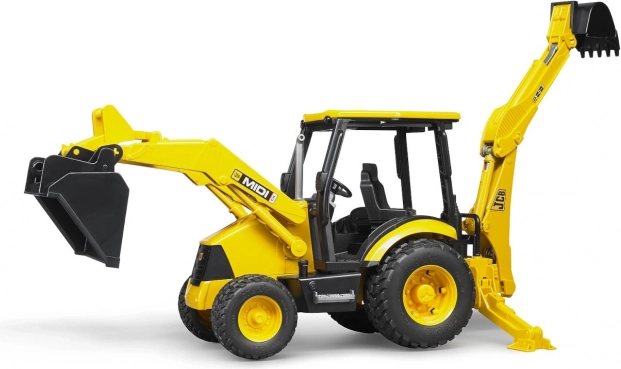 Bruder traktor JCB MIDI to realistyczny model wielofunkcyjnej ładowarki, oferujący świetną stabilność i znakomite funkcje. Ta zabawka obejmuje przednią łyżkę z dwoma pozycjami - ładowaniem i wyładunkiem, którą można łatwo wymienić. Tylne ramię koparki można usunąć, a fotel kierowcy jest obrotowy, co dodaje grze realizmu i dynamiki.