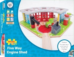 Drewniane depo jest zaprojektowane dla pięciu różnych pociągów i zawiera funkcjonalny obrotnik, co umożliwia łatwe przemieszczanie pociągów między poszczególnymi garażami. System zawiera otwierane drzwi i stację paliw, co przyczynia się do realistycznych wrażeń z zabawy.