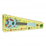Klasyczna drewniana akustyczna gitara Nathalie Lété w turkusowym kolorze z ilustracjami francuskiej projektantki. Zawiera nylonowe struny, kostkę oraz zapasową strunę. Idealna dla dzieci od 3 lat.