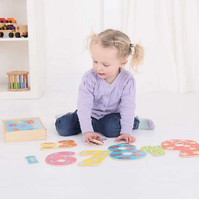 Ten zestaw edukacyjnych puzzli uczy dzieci rozpoznawać cyfry i przyporządkowywać im ilość. Każda liczba składa się z odpowiadającej jej liczby elementów (np. liczba 4 ma cztery elementy) z wesołym zwierzęcym motywem, co wspiera naturalną naukę i radość z układania.