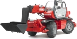 Szczegółowo wykonany model teleskopowego ładowacza MANITOU MRT 2150 marki Bruder ucieszy małych budowniczych i kolekcjonerów. Oferuje obracaną kabinę 360°, czterokołowe skręcanie dla małego promienia zawracania oraz wymienne osprzęty (łyżka, widły, kosz paletowy). Stabilność zapewniają cztery teleskopowe podpory. Wysoka jakość wykonania z wytrzymałego plastiku, wyprodukowano w Niemczech.