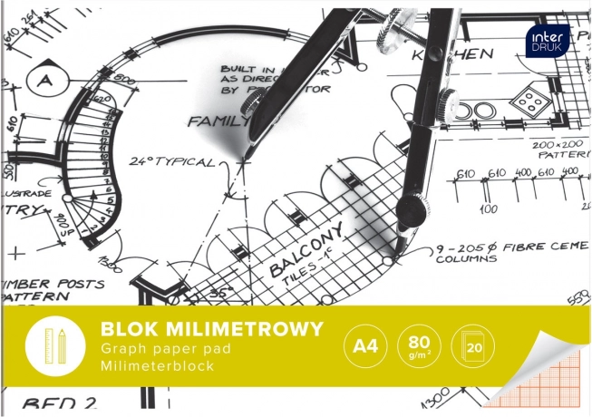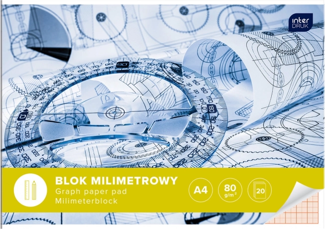 Praktyczny blok papieru milimetrowego w formacie A4 od INTERDRUK jest idealny do rysunku technicznego, diagramów i wykresów. Delikatna siatka milimetrowa umożliwia precyzyjną pracę, gramatura 80 g/m² zapewnia trwałość, a 20 arkuszy z mocnym klejonym grzbietem i sztywną tekturową podkładką oferuje stabilne podparcie nawet bez stołu. Okładka z papieru kredowego występuje w różnych wzorach dostarczanych losowo.