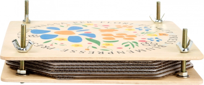 Ta kompaktowa prasa umożliwia delikatne suszenie i prasowanie kwiatów oraz liści między dwiema solidnymi drewnianymi panelami. Za pomocą czterech motylkowych śrub równomiernie dociśniesz nacisk, aby rośliny zachowały kształt i kolor. Świetne narzędzie dla małych odkrywców i kreatywnych dusz.