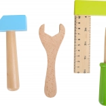 Pas na narzędzia zawiera barwne drewniane narzędzia, które wspierają rozwój małej motoryki i kreatywnej zabawy.