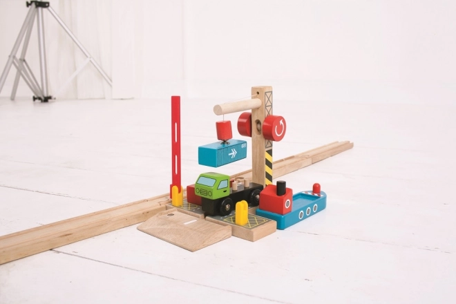 Odkryj świetny drewniany terminal z funkcjonalnym magnetycznym dźwigiem, który przybliży dzieciom świat portów i kolei. Zestaw zawiera drewnianą ciężarówkę z kontenerami oraz solidny dźwig do łatwego załadunku i rozładunku. Całość jest bezpieczna, trwała i zachęca do otwartej zabawy.