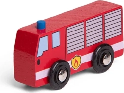 - 5 drewnianych pojazdów: wóz strażacki, radiowóz, piętrowy autobus, taksówka, łódź