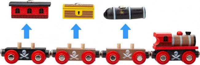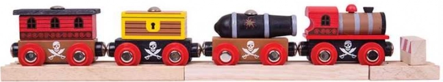 Pirat kari od Bigjigs Rail jest idealnym wyborem dla małych poszukiwaczy przygód. Zestaw zawiera lokomotywę i trzy szczegółowo wykonane wagoniki z klasycznym magnetycznym łączeniem. Kompatybilny ze wszystkimi drewnianymi systemami kolejowymi.