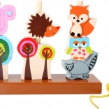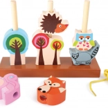 Stojak z 3 kołkami, sznurek, 8 elementów do nawlekania (leśne zwierzątka i drzewa)