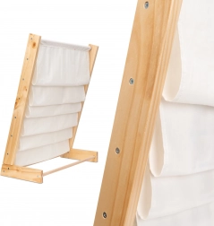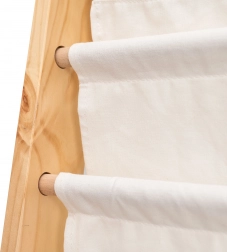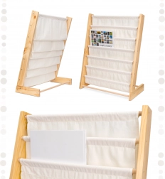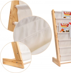 Regał wykonany z wysokiej jakości drewna i tekstyliów, co zapewnia łatwe czyszczenie. Dzięki solidnej konstrukcji i wytrzymałym materiałom będzie służył przez wiele lat i z łatwością pomieści cięższe książki, gdy twoje dziecko będzie rosło.