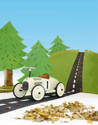 Dzięki ogumowanym kołom jazda jest cicha także na twardych nawierzchniach, dlatego jeździk nadaje się do mieszkania i na chodnik. Retro design wyróżni się w każdym pokoju dziecięcym i wspiera wyobraźnię oraz radość z ruchu.