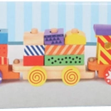- lokomotywa + 2 wagony, kolorowe drewniane klocki