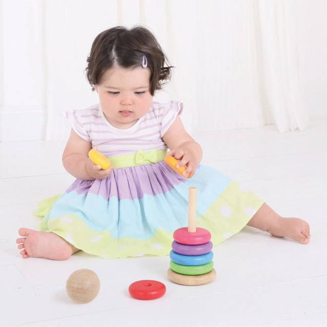 Ten drewniany stackingowy ludzik to idealna zabawka do rozwoju motoryki małej oraz koordynacji ręka–oko. Układanie krążków według wielkości nie tylko bawi, ale także uczy dzieci rozpoznawania rozmiarów i kolorów.