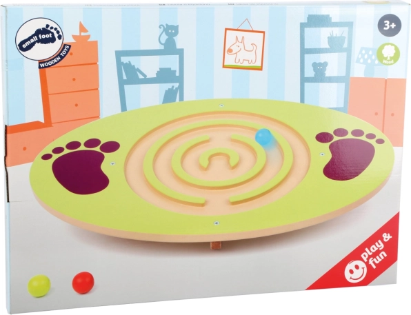 Deska balansowa jest wykonana z certyfikowanego, naturalnego drewna i oferuje ekologiczną i trwałą konstrukcję. Dzieci mogą stać na owalnej platformie i próbować balansować ciałem, prowadząc kolorową kulkę przez wyrzeźbiony labirynt. Ten angażujący sposób zabawy zachęca do rywalizacji i rozwija kluczowe umiejętności motoryczne.