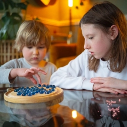 Dzięki wysokiej jakości wykonaniu z materiałów pochodzących ze zrównoważonych źródeł gra jest trwała i przyjemna w dotyku. Doskonała do cichej zabawy, rozwija koncentrację i planowanie kroków – a przy tym świetnie prezentuje się w pokoju dziecięcym lub salonie.