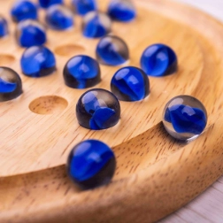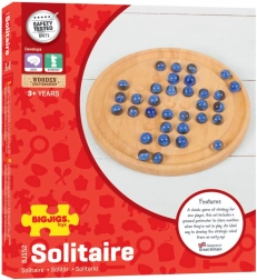 Odkryj ponadczasową rozrywkę z drewnianym solitaire BIGJIGS TOYS. Błyszczące niebieskie kulki i starannie wykończona okrągła plansza tworzą elegancką grę logiczną, która sprawdzi Twój spryt i cierpliwość. Celem jest przeskakiwanie kulek tak, aby na planszy pozostała tylko jedna.