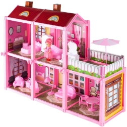 Ten stylowy domek dla lalek przenosi dzieci w świat fantazji: wiele pomieszczeń, balkon i bogate akcesoria do codziennych opowieści. Dzięki przemyślanym wymiarom (długość 60 cm, szerokość 17 cm) mieści się na półce i dziecięcym stoliku, a jednocześnie zapewnia dużo miejsca do zabawy.