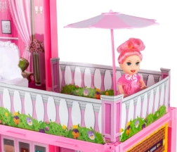 Domek oferuje przestronny balkon z parasolem – idealne miejsce na odpoczynek lalki i plenerowe posiedzenia. Świetny do tworzenia opowieści i scenek z codziennego życia.